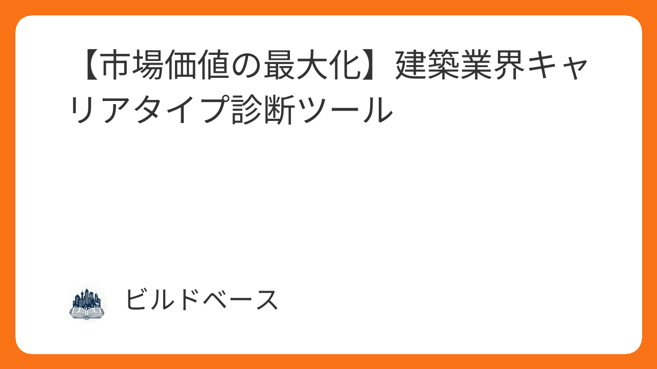 【市場価値の最大化】建築業界キャリアタイプ診断ツール