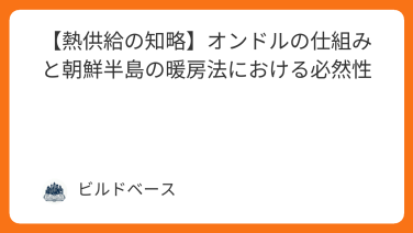 【熱供給の知略】オンドルの仕組みと朝鮮半島の暖房法における必然性