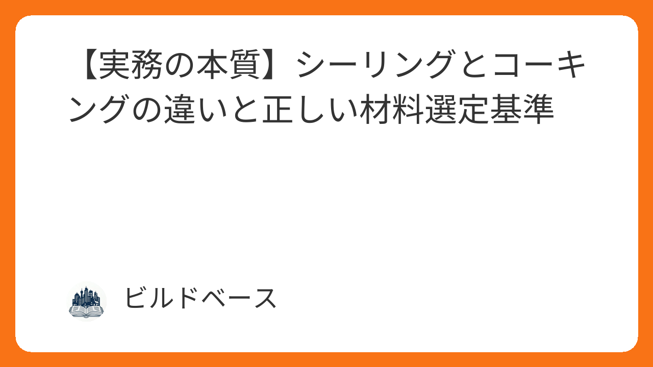 シーリング材は単なる隙間埋めではなく、建築基準法の安全性を物理的に支える「最前線の防衛ライン」であることを銘記せよ。
