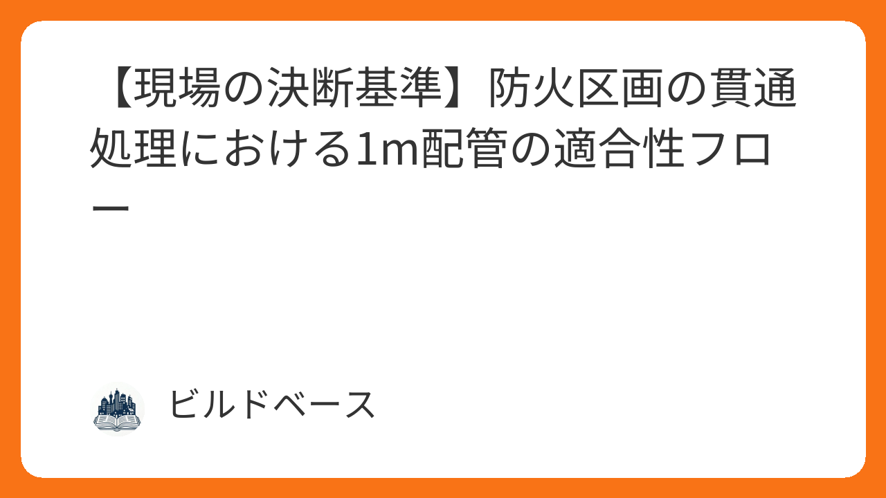 告示工法と大臣認定工法の正確な峻別は、法規を盾に現場を論理的に掌握し、周囲の反対意見をねじ伏せて威厳を奪還するための最強の武器となります。実務上の唯一の決断基準を明確にすることで、現場を主導するプロの矜持を取り戻してください。防火区画の貫通処理における1m配管の適合性フローについて詳しく解説します。