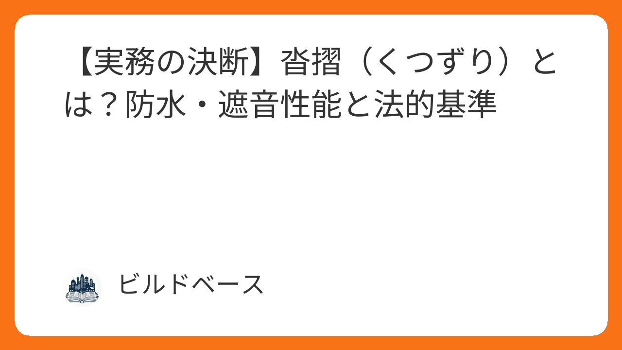 本記事では、沓摺の定義から防水・遮音性能、転じて厳格な法的基準に至るまで、現場を論理的根拠に基づいて主導するために必要な専門知識を網羅的に詳解します。部材一つが建物の資産価値にいかに直結するかというROIを提示し、曖昧な指示をねじ伏せるプロの威厳を奪還するための指針を宣言します。