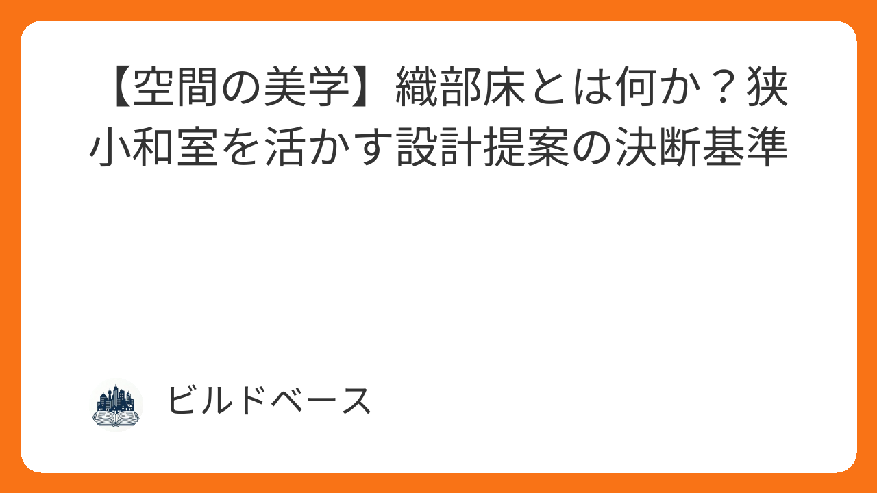 織部床の採用を「面積不足の妥協」ではなく「空間価値を最大化させる攻めの選択」と定義し直すことが、施主の信頼獲得に直結します。